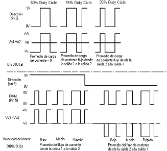 (ciclo de trabajo) y su sentido de giro con la señal de