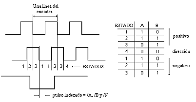 (cuadrature incremental encoder) de 3 canales M1, M2 e IN. El contador